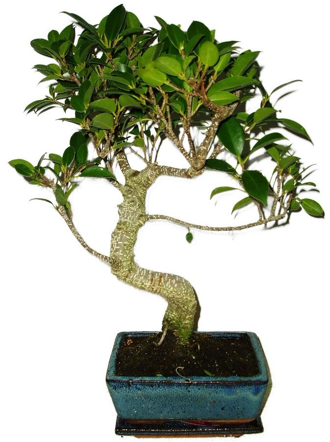 Ficus retusa – figowiec to klasyczne bonsai do uprawy w pomieszczeniach, osiągające wysokość 60 cm i wiek 20 lat. Wymaga półcienia lub słabego oświetlenia, ale nie toleruje przeciągów i zimnej wody.