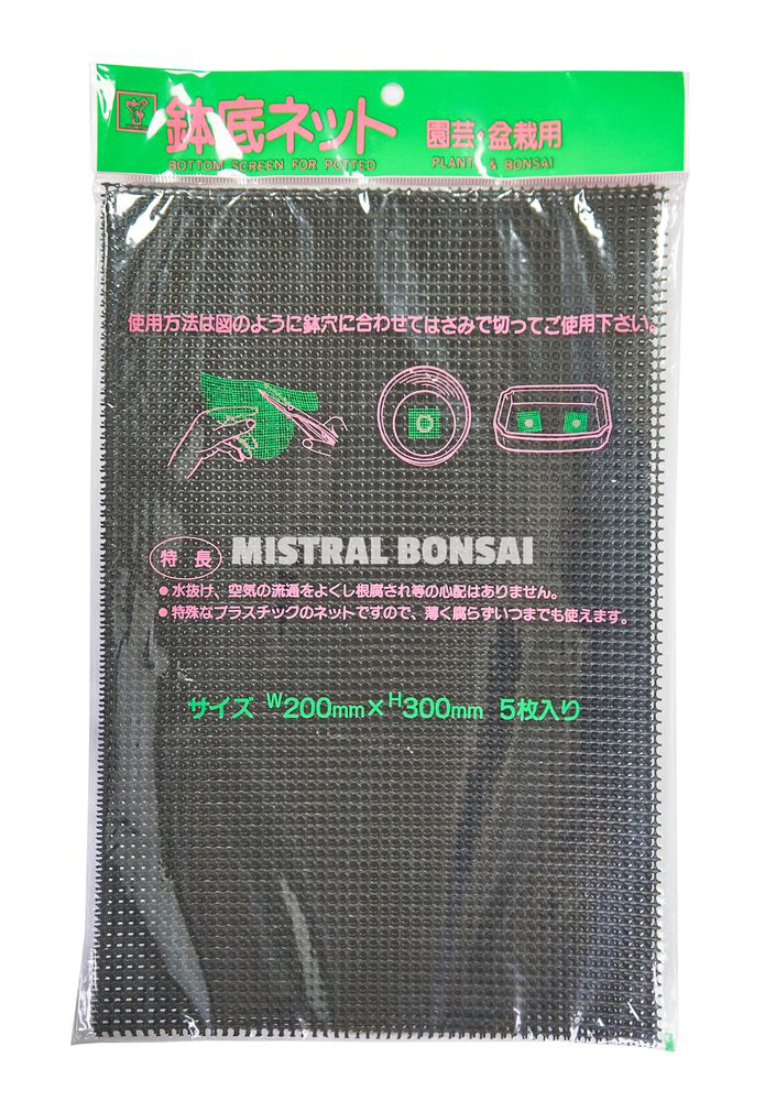 Siatka drenażowa służy do lepszego odprowadzania wody z doniczki (umieszcza się ją na otworze odpływowym w doniczce bonsai). Wymiary: 200 mm x 300 mm.