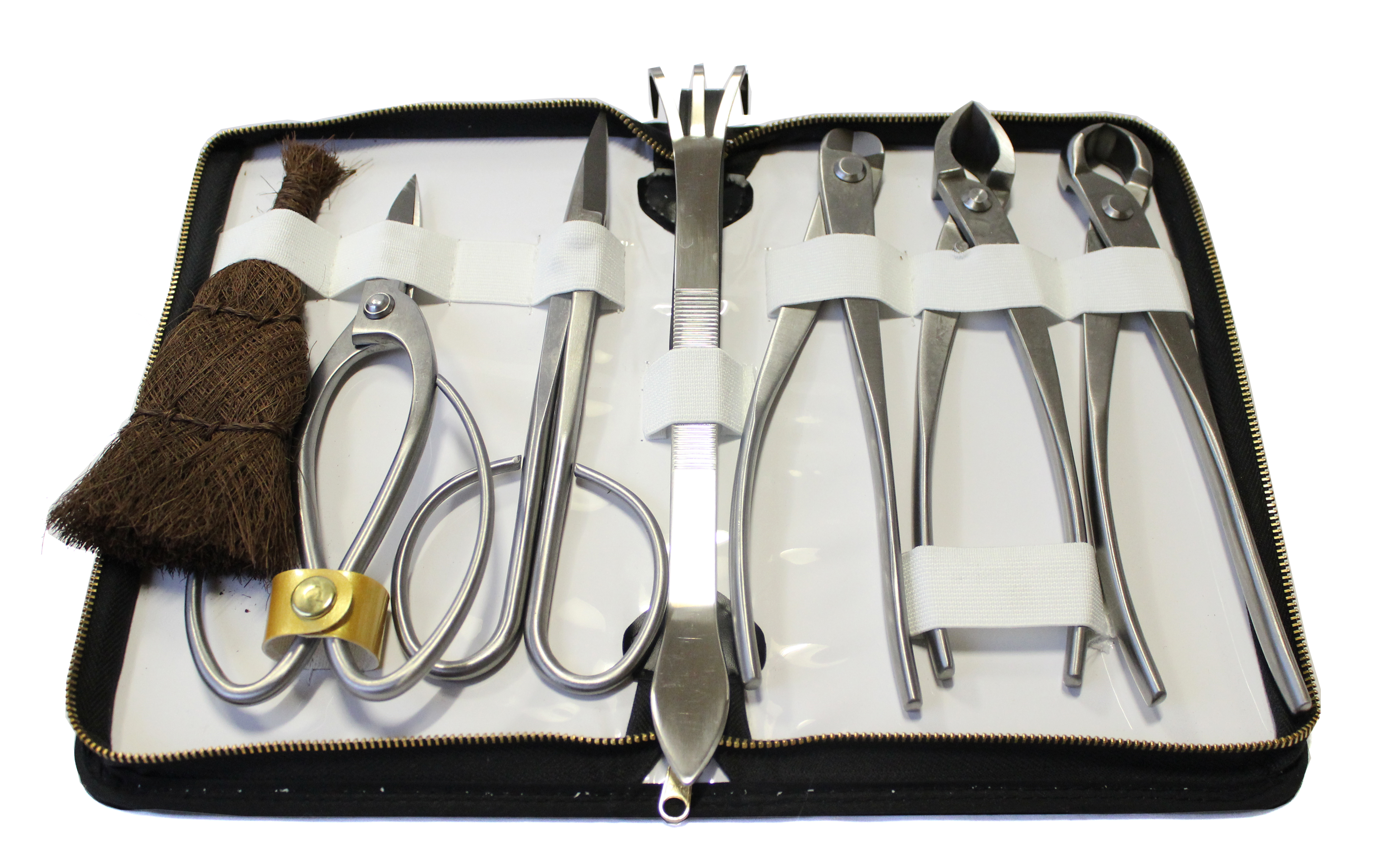Luksusowy, siedmioczęściowy zestaw narzędzi ze stali nierdzewnej w eleganckim etui. Polecamy go każdemu, kto ceni jakość i doskonałą funkcjonalność. Zawartość zestawu narzędzi do bonsai – patrz zdjęcia.